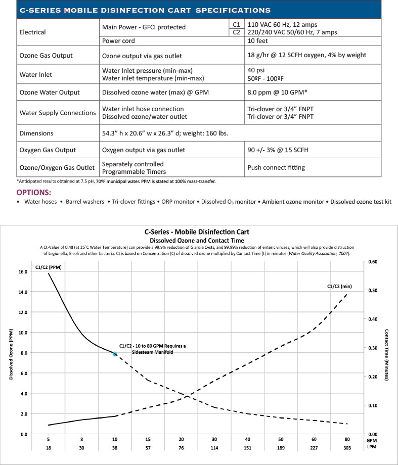 Food and beverage professionals understand the benefits of ozone as a disinfection tool and a safe organic solution that can replace traditional or harsh chemicals. The trick has been, finding the perfect product that’s powerful, effective, well designed and reliable, yet affordable. The ClearWater C-Series mobile disinfection cart is the perfect one-stop solution.